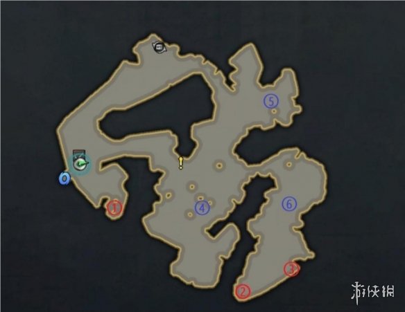 如下图,在1、2、3处捡东西,在4、5、6处打掉任务物品。完成后触发紫色任务完成岛心。
