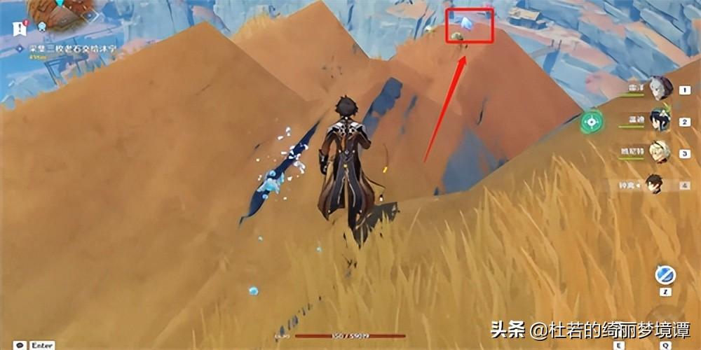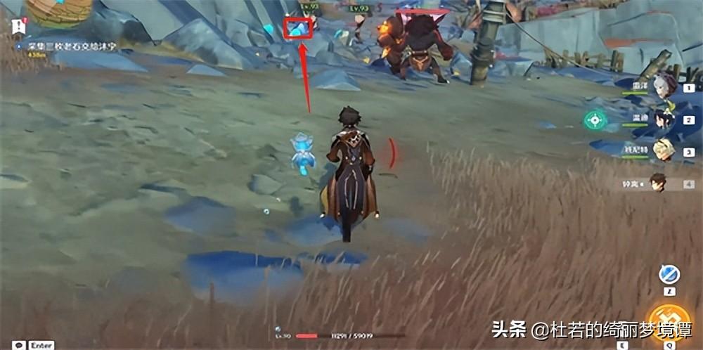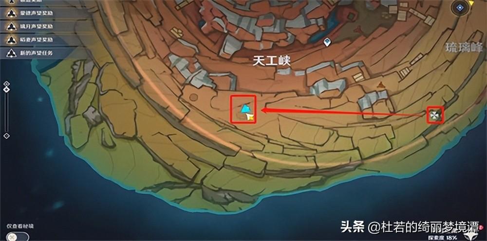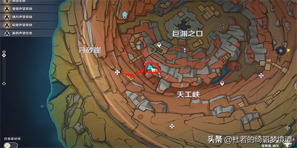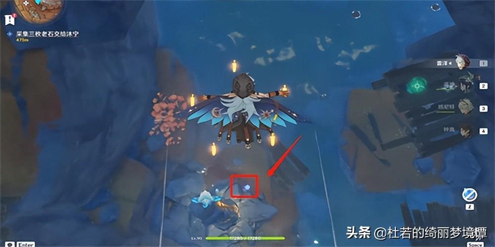 1:穆宁的任务叫做隐石之言,就是收集石头。先去丹砂崖锚点,然后按照图中画的路线,飞过悬崖,一路往下,看到一群秋秋人,就获得了第一名。一块老石头。