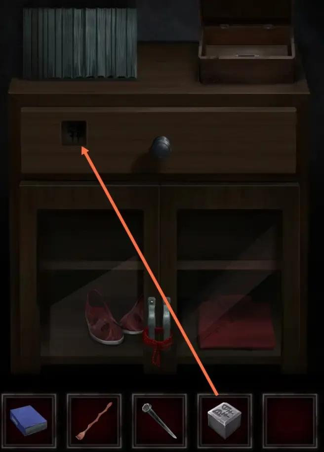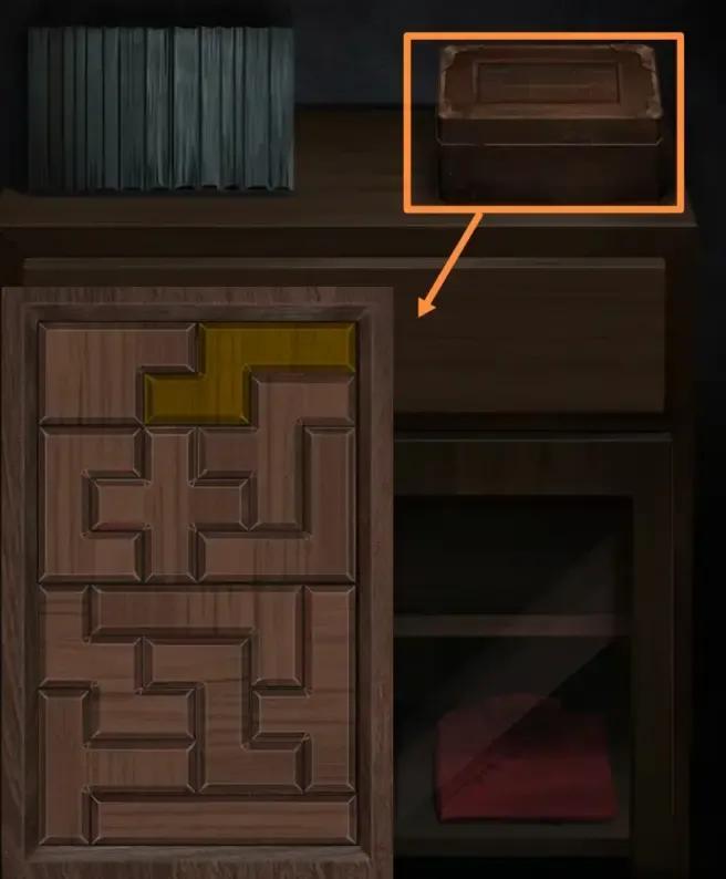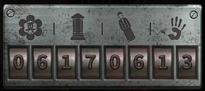 去寿衣店左边的房间,点击左边的柜子,点击柜子上的箱子,将所有的方块放入方格中即可打开箱子,如下图(010 -59000)。