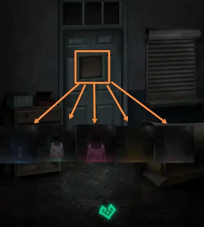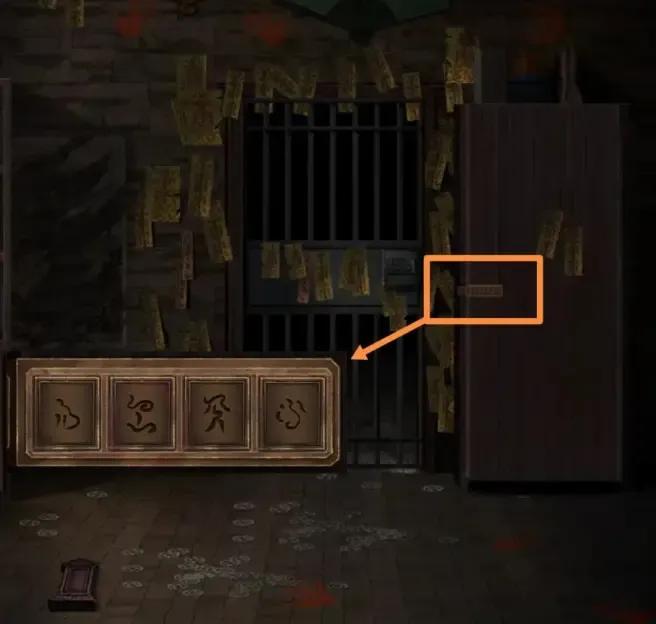 进入地下室右侧的房间,点击右侧柜子的密码,将四个特殊字符按顺序排列。