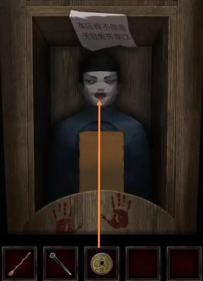 前往裹尸布店左侧的房间,将古币放入纸口中。