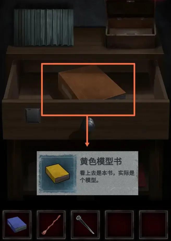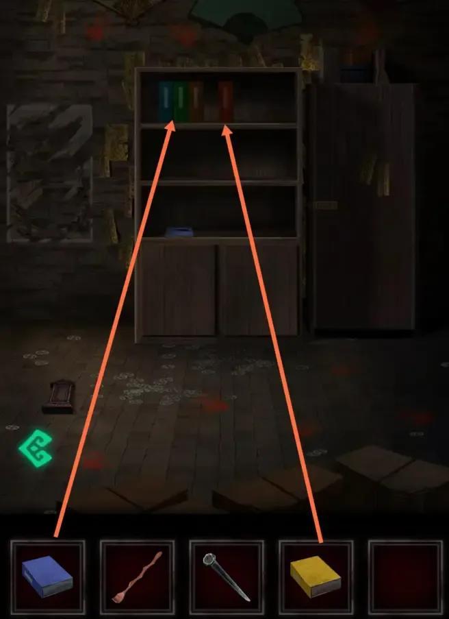 前往地下室右侧的房间,将蓝色模型书和黄色模型书放在书架上。
