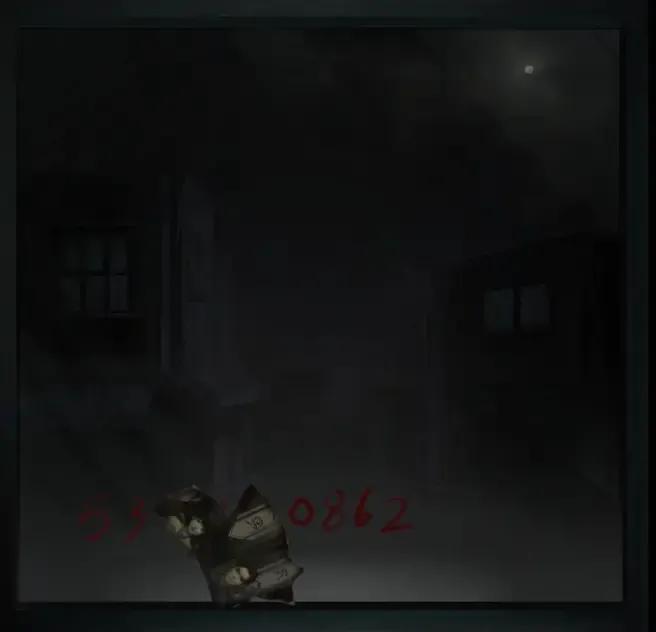 来到寿衣店右侧的房间,纸片人撞倒了书架上的密码盒。然后他来到裹尸布店左边的房间,检查了窗户。密码被照片遮住了。记下无障碍部分,即530862。