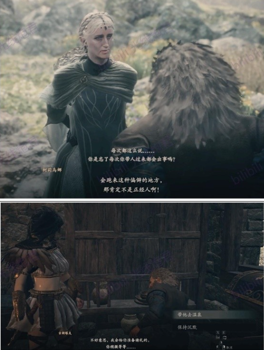 3.送他回家后,他的妻子(精灵)“Coriona”一眼就看出我们“不认真”(她很会判断人)。然后她就开始拉啊拉,然后要了送他去火山岛营地泡温泉。