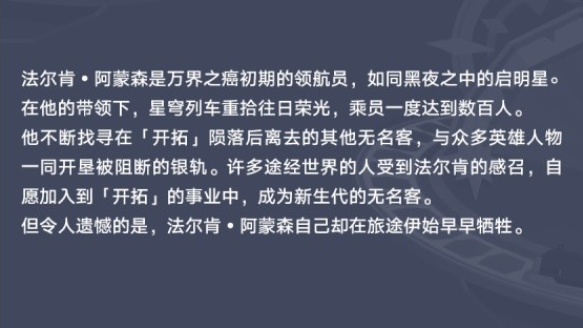 在过去的星际列车导航者中,“启蒙者”猎鹰阿蒙森和你是同一类型的人。