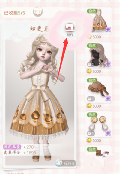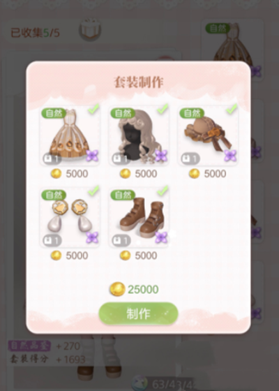 3、弹出套装制作页面,显示所有组件,消耗金币即可自动制作。