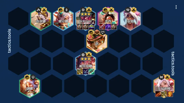1、阵容构成亚索/德莱厄斯、奇亚娜、迦娜、沃利贝尔、崔丝塔娜、黛安娜、洛、艾瑞莉娅