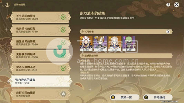 原神猜想第六天的挑战是张力液的破裂。你有没有想过史莱姆能承受多少重量?那么如何通过第六天的挑战呢?小编给大家带来《张力液体破裂》的玩法攻略,一起来看看吧。
