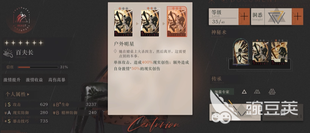 一技能初始创伤值并不是很高。主要是提供一个额外的提升,带来自己激情值20%的创伤。所以,如果这个百夫长的热情值比贾高的话,还是适合使用这个技能的。如果激情值一般的话,这个效果只会是上述创伤值的160%。