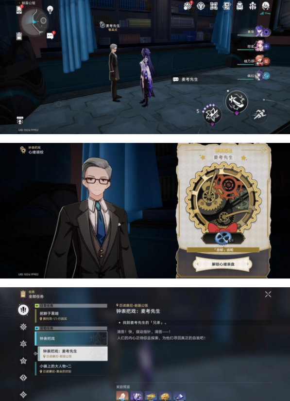 2.到达这里后,您可以找到NPC麦考老师,。对话结束后即可开始时钟戏法任务;