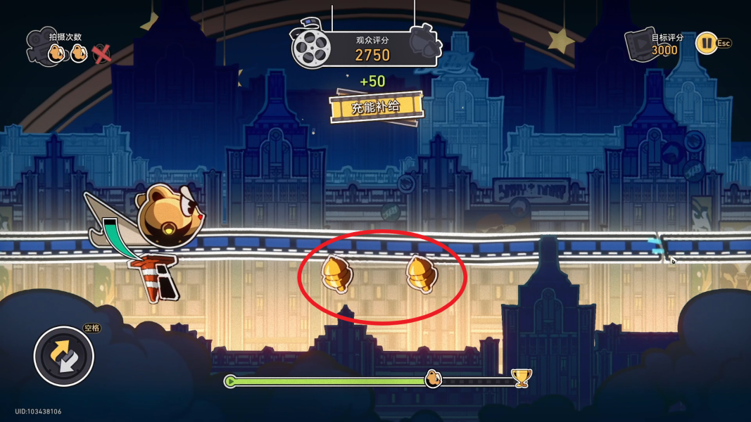 在一些怪物和路障交叉的密集区域,我们可以策略性地放弃得分(如果你对自己有信心,也可以正常玩),而选择长按空格进入中轨道,这也是另一种无敌。方式,但无法获得任何积分