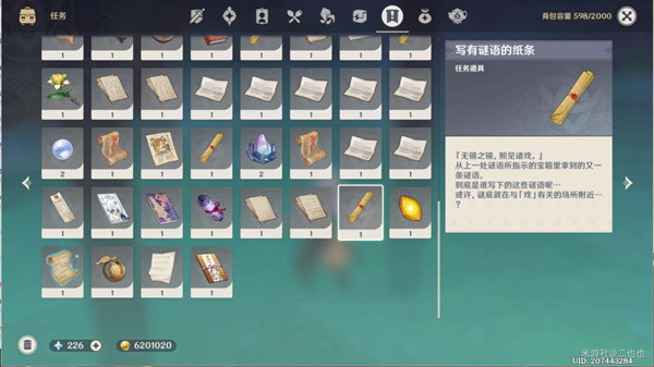4. 检查背包里的谜语纸条,获得无反光镜,看看剧中的新谜语。