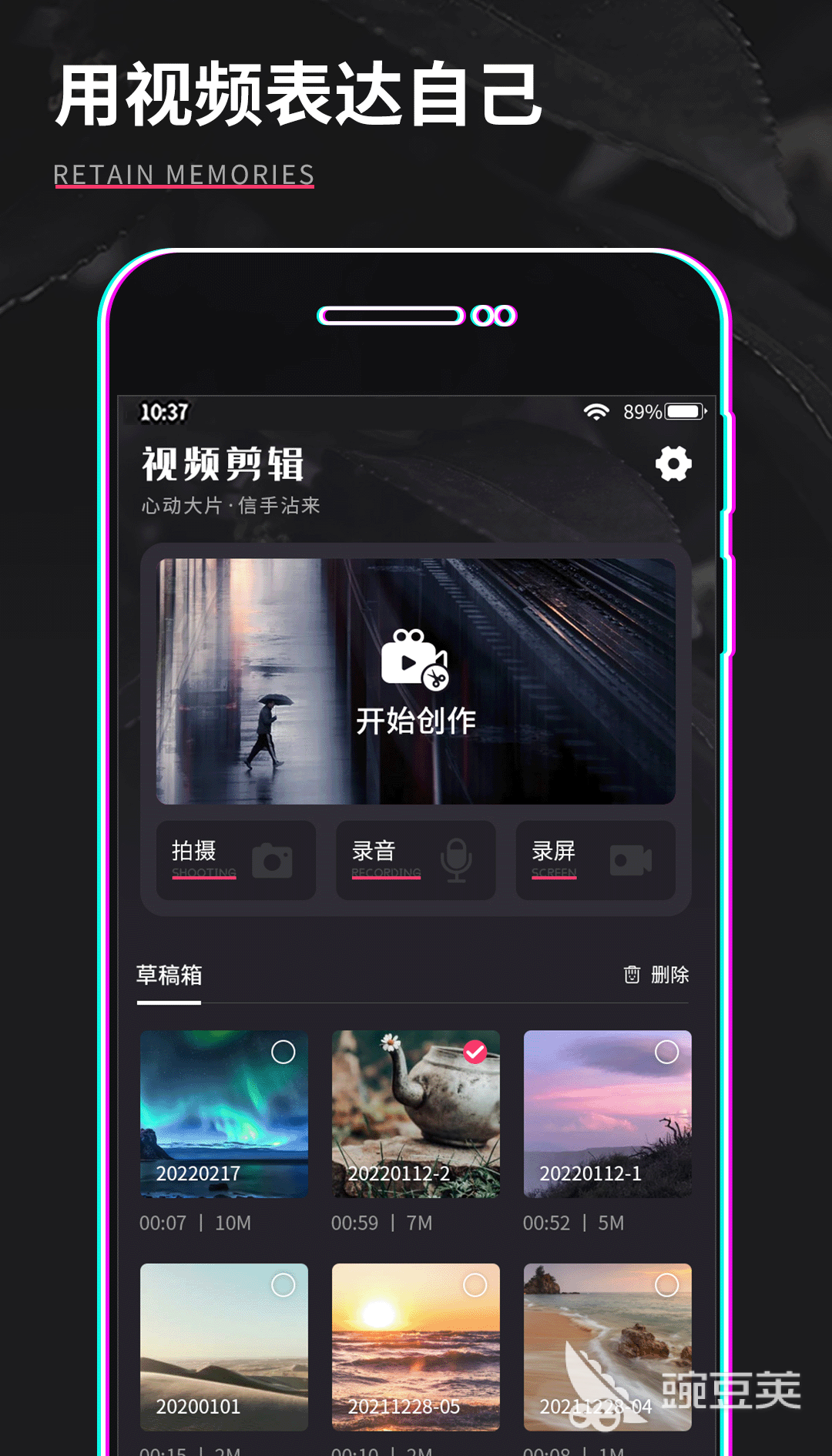 用视频记录你的生活,表达你的感受。制作Kadian 视频的步骤很简单。还可以裁剪和编辑照片或视频,为创作者带来有趣的视频编辑方法,让他们学习视频制作。