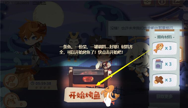 1.首先,对于鱼类,玩家可以选择青鳉鱼或河豚。点击开始烤鱼。