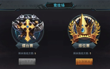 竞技场10级开放,每天可挑战5次。消耗钻石可达到最大购买次数。 VIP等级越高,可购买的商品越多。每个竞技场都会获得固定的荣誉值奖励和随机的道具奖励,胜利和失败的奖励不同。挑战不同的对手,赢得不同的奖励。玩家可以根据对手的等级和战力提示来选择对手。如果他们选择战力比自己低的对手,胜率会非常高。