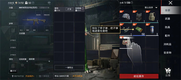 4.玩家还可以通过“黑市”购买装备或物资,游戏战利品也可以通过黑市出售,以获得更多资金;