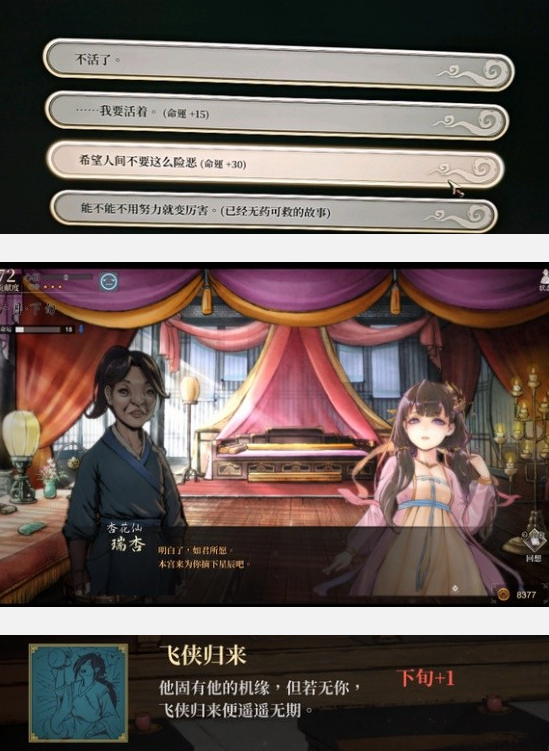 方法一,只要以前见过瑞幸就打电话给瑞幸(留学时,第三个对手骰子头在比赛中最高,击败瑞幸,引起瑞幸的不满。或者完成瑞幸想要的真(假?)结局让主角当皇帝)许配给师兄后,会有新的师姐新选项,点击第三个即可。随后,他陪着哥哥下了山。哥哥去世后,瑞幸又复活了。