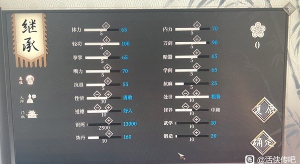 活侠传怎么卡初始点数