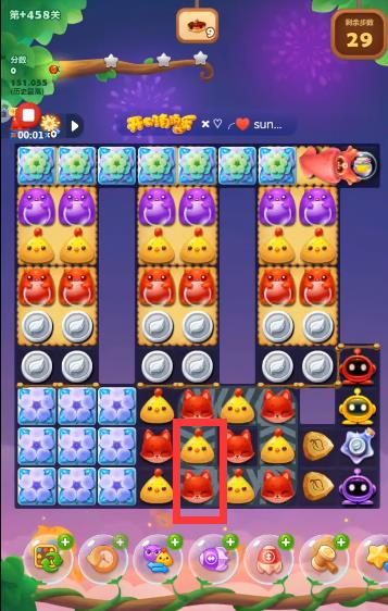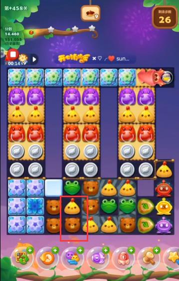 2、改变小鸡和熊的位置,同时消灭小鸡和熊。
