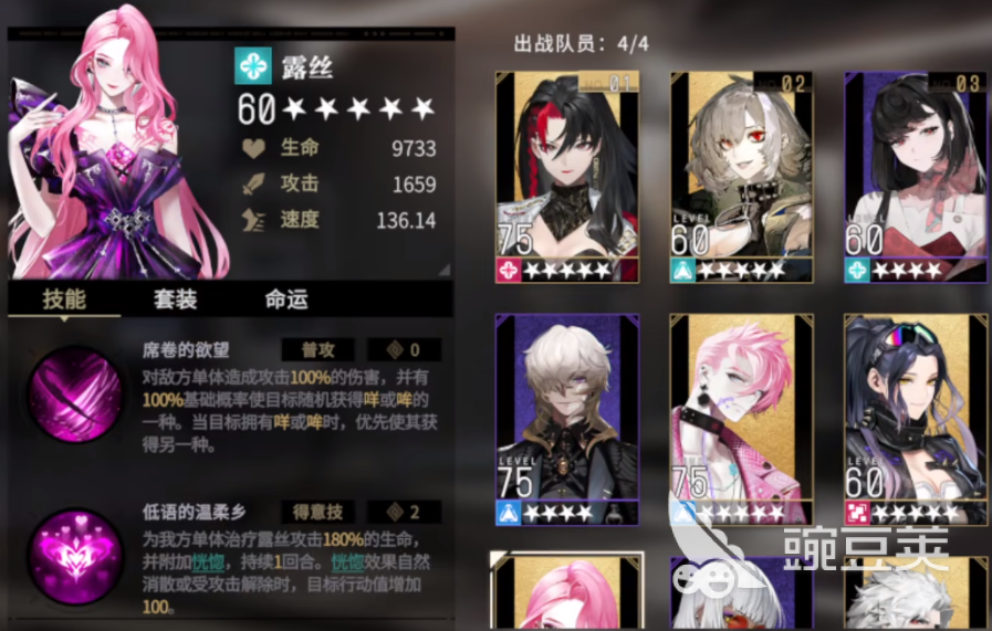 露丝:露丝是一个更强的PVP角色,因为它可以增加控制敌人15%的伤害,并且可以与多控制角色搭配。解放B可以增加敌人特殊技能和秘密技能的能量消耗,在PVP中非常有用。