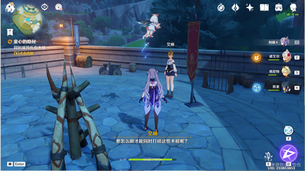 5。使用元素战斗技巧来摧毁所有木桩。