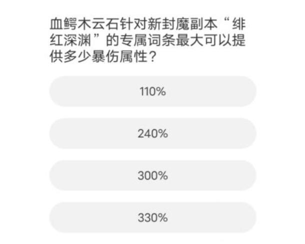 3.血鳄木石的独家进入为新的恶魔信封地牢提供了多少个风暴损坏属性?