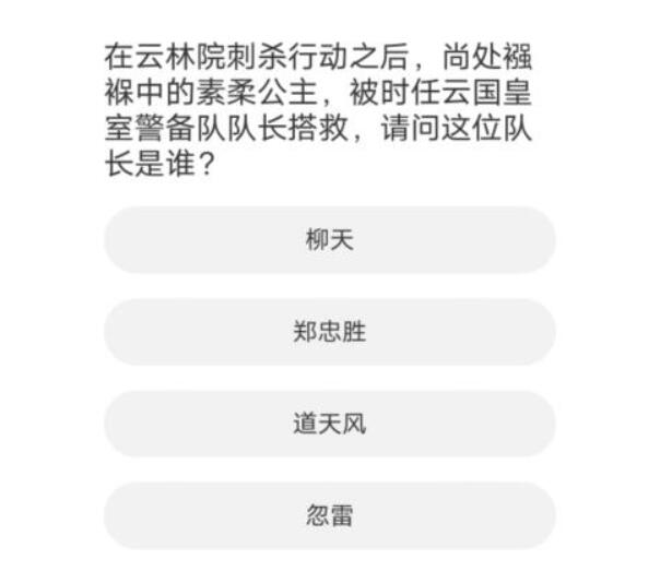 5。在Yunlinyuan被暗杀后,仍处于裸体位置的苏鲁公主被当时的皇家卫队的队长救出。这个队长是谁?