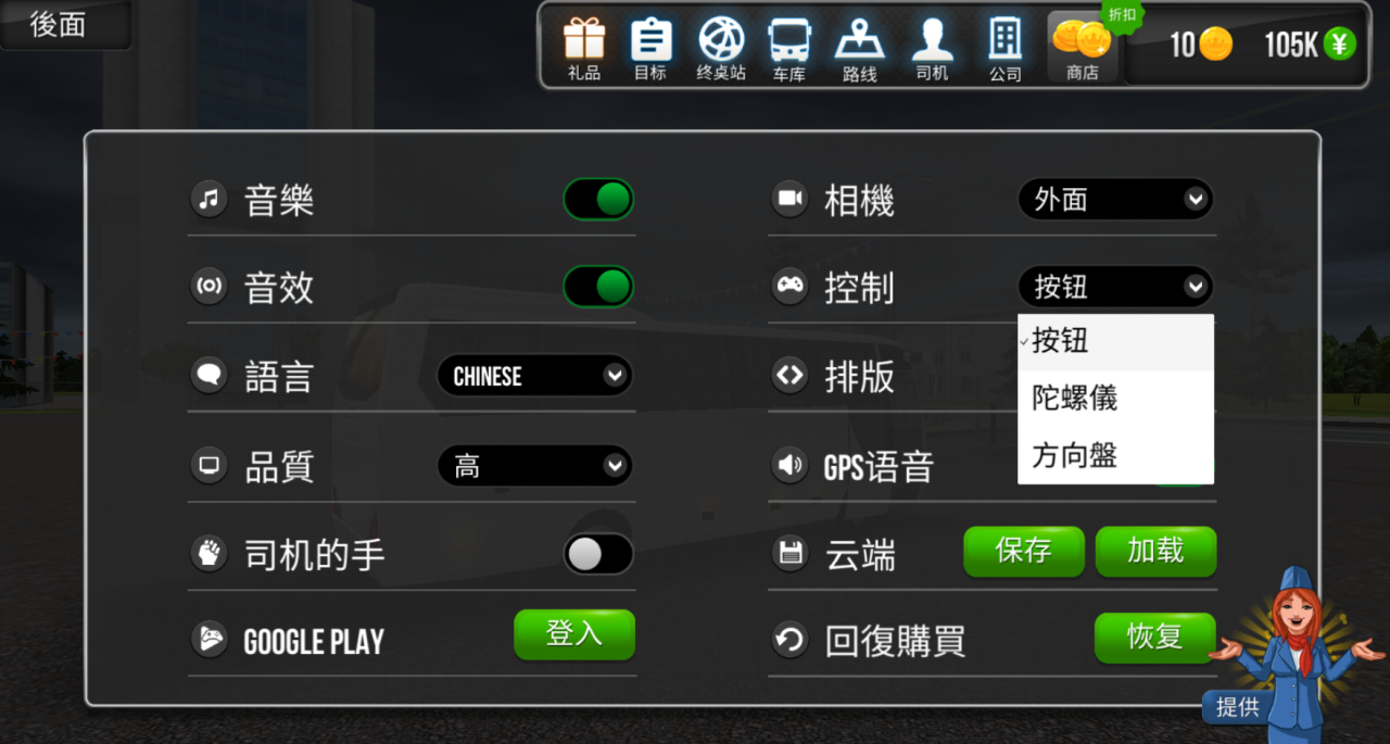 首先,我们需要打开游戏并创建一个帐户,然后输入游戏的主要接口,然后打开设置接口。我不需要对界面的位置说更多。那些阅读了编辑指南的人必须知道它位于主界面右下角的小齿轮。打开它后,我们可以在右侧看到一系列调试按钮。我们单击具有三个选项的第二个控件:按钮,陀螺仪和方向盘。只需选择您喜欢的一个即可。不是很简单吗?