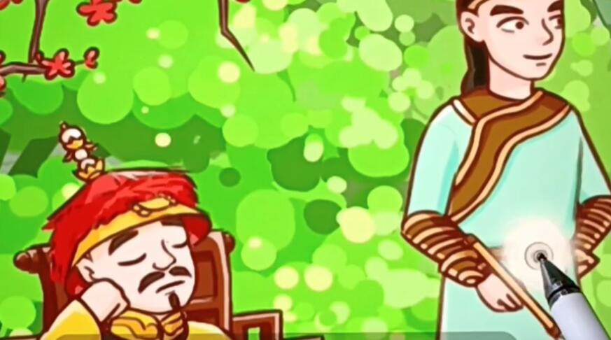 第一关——御花园记1。单击王子手上的长笛,然后将其放在皇帝的头上。