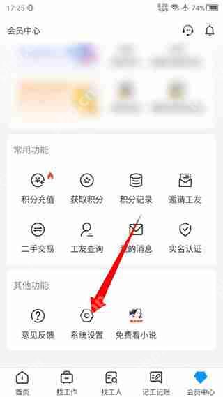 步骤2:输入会员中心后,选择“系统设置”选项。