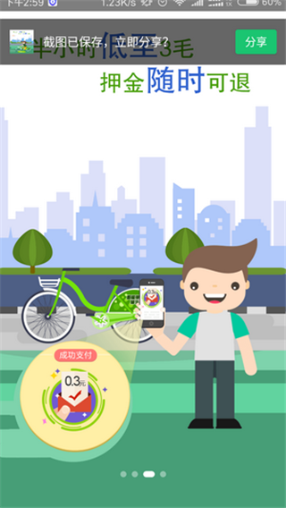 这比摩拜单车和ofo单车半小时一元的收费要低很多。还有一款不知名的自行车,30分钟收费五毛钱,竞争力立马上了一个大台阶。
