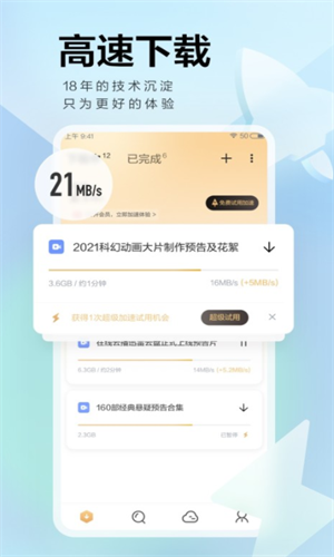 迅雷2022不限速版是小编我找老版本的迅雷找了好久。没有速度限制,几分钟就能跑满宽带。迅雷7.0云盘功能全新上线!18年的技术沉淀,只为更好的体验和强大的下载功能。所以我们建议你在wifi下使用手机迅雷,否则流量很容易超标!无永久更新,一键释放手机存储空间,倍速播放,高清画质,云播无等待,为用户提供专属私密空间。有时候用户想看电影电视,却不知道怎么下载。您可以将电影和电视资源添加到频道内容中,以创建下载链接。甚至可以和下载的一起播放观看,使用起来非常方便快捷。