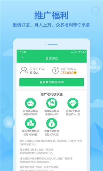 4.四级朋友:我是最赚钱的推广人。我给好友发6元充现金红包,还能享受独有的四级好友制度,推广收益高达40%。