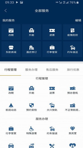 2.包括:航班查询、机票预订、在线购买、在线退票、在线改期、在线升级、订单管理、天气预报、手机值机、航班动态等服务。