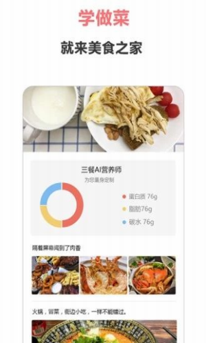 美食之家app下载是美食菜谱的一个应用。轻松学习美食菜谱,做出不同的美味菜肴,体验自己动手制作美食的乐趣体验。无论你想制作和学习什么样的美食,喜欢什么样的美食,在这里你都可以提供海量的各类菜谱和精细精准的制作教程,供用户朋友学习使用,在制作美食的过程中感受不一样的乐趣,让用户轻松找到自己喜欢的美食。