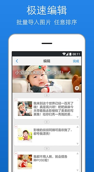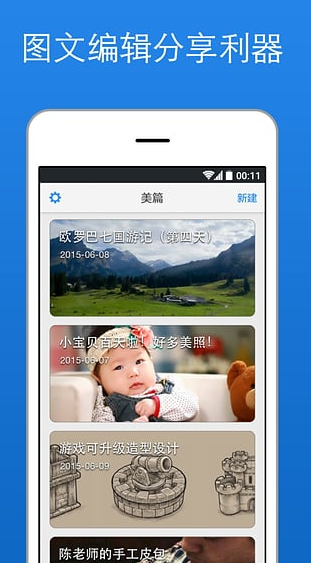 一个图文工具:自由排版,多种背景模板,图片裁剪美化,调整图文顺序,插入视频和背景音乐,分享给朋友和微博平台。