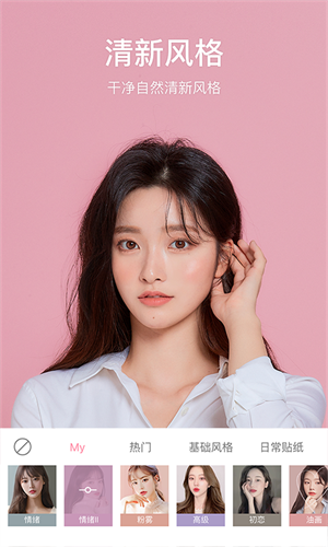更多搭配有大量美颜效果可供选择。软件有先进的算法功能,可以为你推荐最适合的脸型,拍出来的照片也是高清的,给你一种甜咸的质感效果。感兴趣的朋友快来下载试试吧!