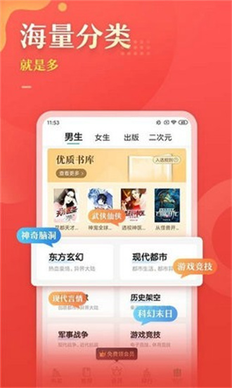 1、覆盖热门网络文学新品类,20万册小说,精挑细选,优质阅读。