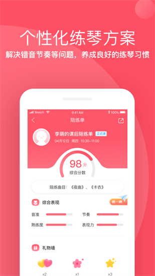 1、是一款为4-14岁儿童提供一对一在线钢琴练习教学的教育学习软件。