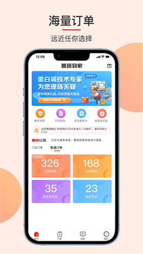 平台聚合千万级服务需求和百万商户合作资源。订单覆盖全国3000+区县、40000+街道。大量本地周边订单实时推送,大师可在线匹配优质订单;