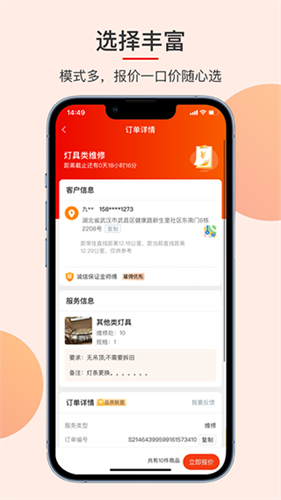 师傅可以根据自己的时间安排、订单信息、服务距离等自主抢接订单,并在线报价/洽谈;