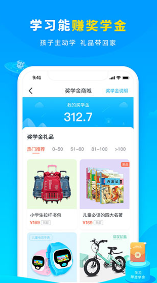【奖学金红包天天有】完成学习任务即可获得奖学金,数百种学习工具和玩具可免费兑换,帮助学生养成良好的学习习惯,让孩子有目标、有动力、爱上学习!