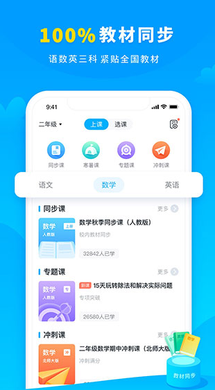 【同步课程内容】与教材100%同步,完整的夏秋寒春课程体系,同步课程、冲刺课程、预习课程、专题课程、直播课程五种课程类型,2万多门优质课程AI课程,覆盖全国几十个教材版本;