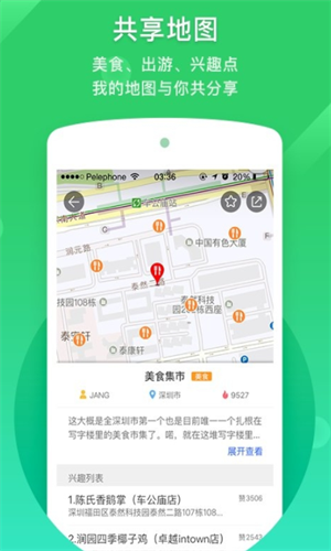 【分享地图】收集美食和旅游地点并分享给其他人。