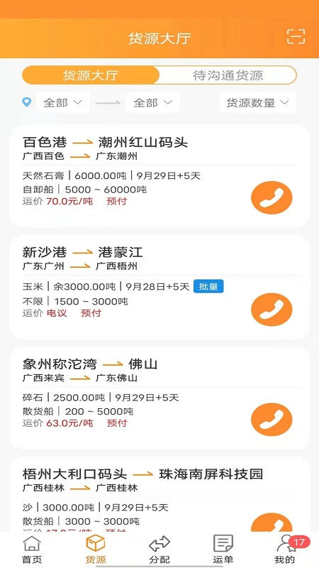 2、直接查询货主、船东电话,一键拨打电话,省去中间环节。