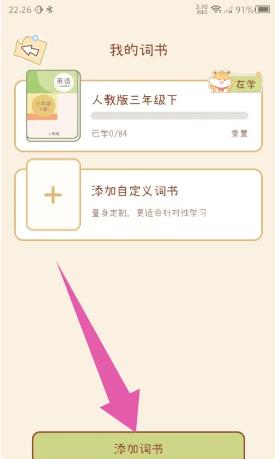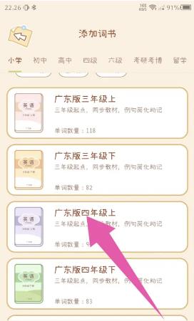 4. 在添加词汇书页面,选择需要更换的词汇书。