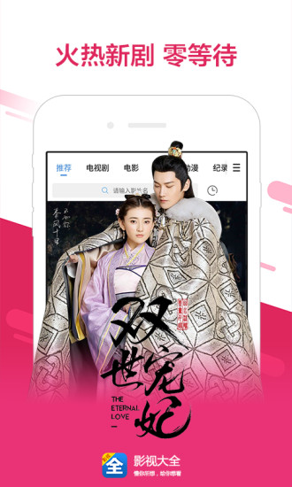 我们收集了众多重磅剧集和热门电影,你想看的这里都有! 影视大全是一款超火爆的视频聚合产品,整合了多种正版影视资源。近千万人选择使用影视大全每天陪你看网络视频:无论是热门电视剧、高清电影、热门综艺、热门动漫、海外日韩美剧,你都可以观看随时随地,数千万视频陪伴您。你享受每一天。 【热门电视剧】《谈判官》、《轩辕剑之汉云》、《美丽的浪花》、《鬼吹灯之牧野奇葩说2》、《河神》、《鬼吹灯之黄陂子坟》 、《两世宠妃》《相亲》《醉玲珑》《无心大师2》【热门综艺】《极限挑战》《来了2》《中国新歌声》《转型》 、《中餐厅》、《挑战者第3季》、《我们》《恋爱吧》【新动画系列】《活动/刀剑乱舞》、《Fate/Apocrypha》、《雏逻辑》、《洁癖男!》 《青山君》《裙下的野兽》《爱情被禁止的世界》《最游记RELOAD BLAST》《来自深渊》《青春舞动》《公主密码》