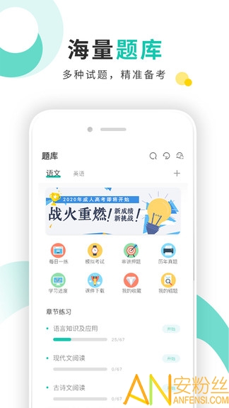 这是一款专门为全国成人考生打造的学习辅导软件。它有非常丰富的在线题库。您可以随时在线查看问题。在线学习相对容易。练习中出现的任何错误问题都会被系统纠正。智能归纳成小题库,方便反复练习,降低错误率。
