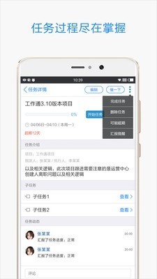 项简单直观的项目简报,跨部门、多成员的工作分配,了解项目进展。