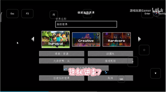 进入创建新世界界面,玩家可以在其中创建新世界。